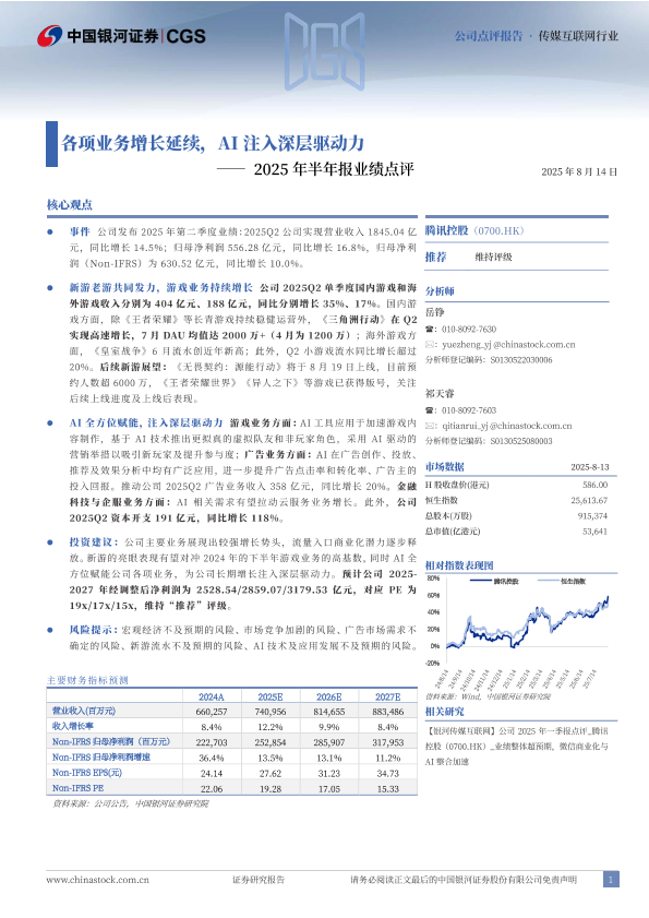 2025年半年报 AI技术 游戏业务 腾讯控股 财务预测