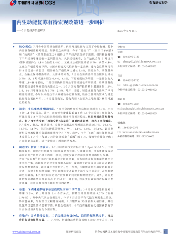 【银河证券】【20250815】7月份经济数据解读:内生动能复苏有待宏观政策进一步呵护-12页