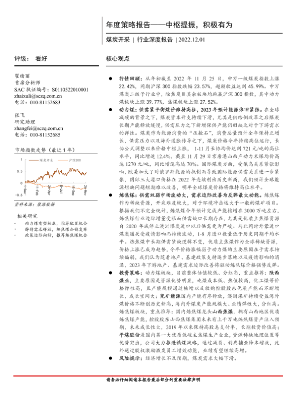 【首创证券】【20221201】煤炭开采行业深度报告:年度策略报告,中枢提振,积极有为-48页