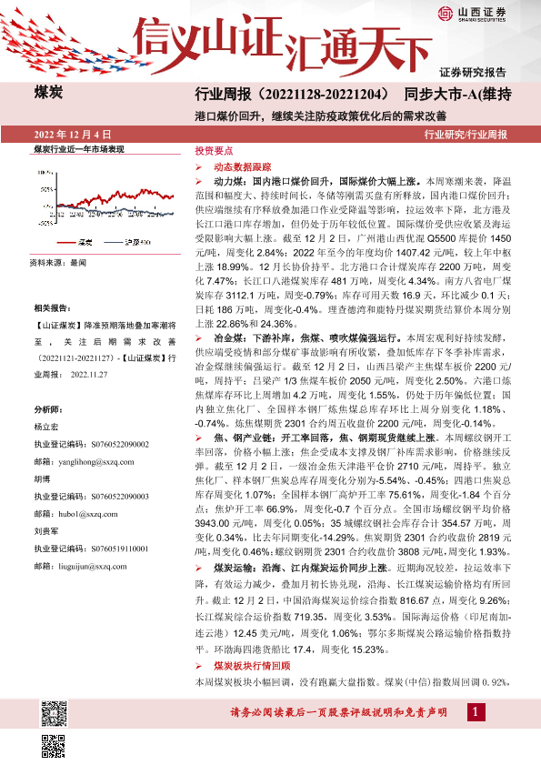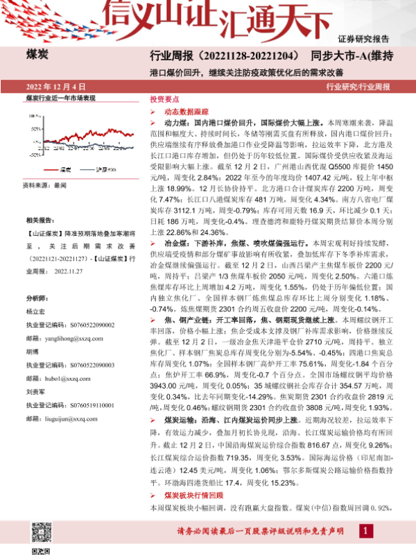 【山西证券】【20221204】煤炭行业周报:港口煤价回升,继续关注防疫政策优化后的需求改善-18页
