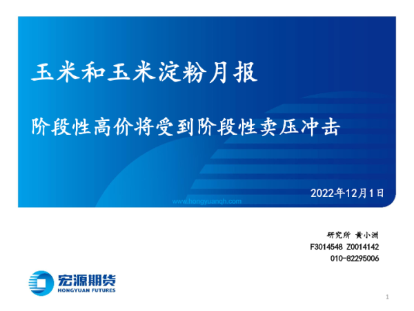 【宏源期货】【20221201】玉米和玉米淀粉月报:阶段性高价将受到阶段性卖压冲击-25页