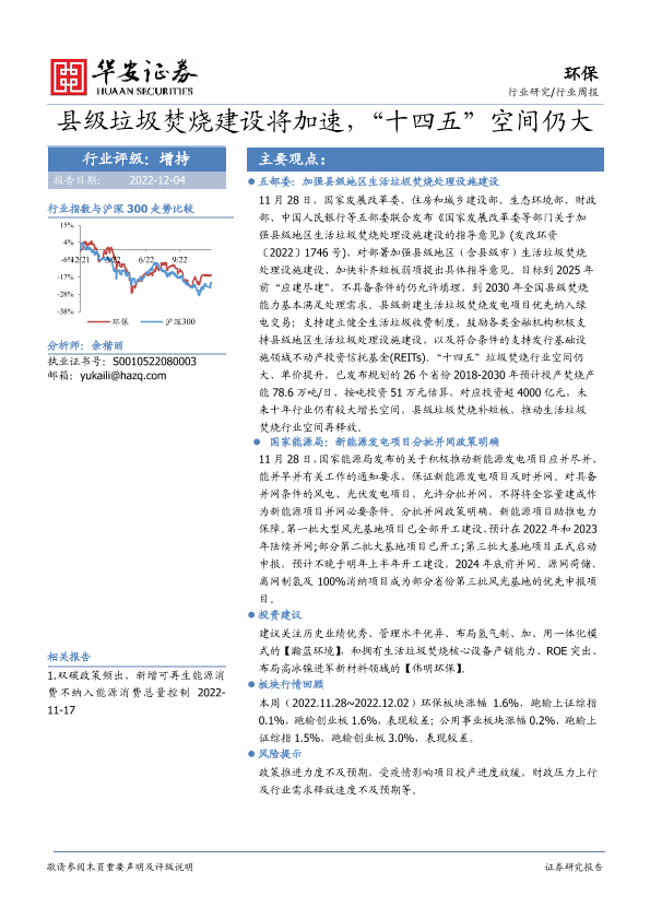 【华安证券】【20221204】环保行业周报:县级垃圾焚烧建设将加速,“十四五”空间仍大-16页