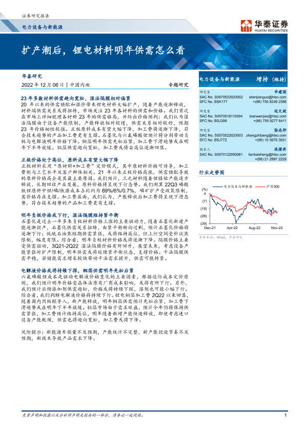 【华泰证券】【20221206】电力设备与新能源行业:扩产潮后,锂电材料明年供需怎么看-33页