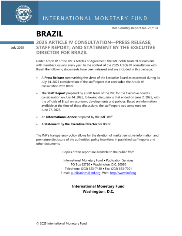 【国际货币基金组织】【202507】BRAZIL 2025 Article IV Consultation—Press Release; Staff Report; And Statement By The Executive Director For Brazil-118页