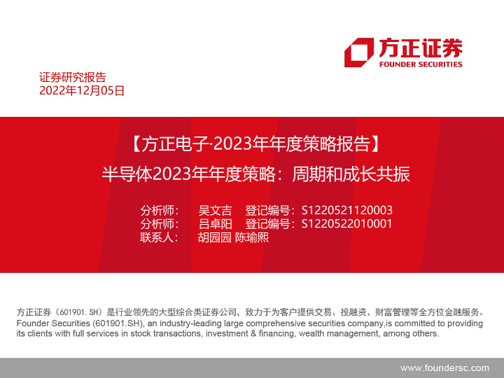 【方正证券】【20221205】电子行业2023年年度策略报告:半导体2023年年度策略,周期和成长共振-100页