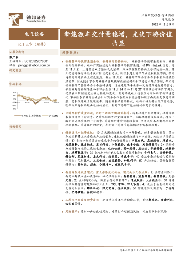 【德邦证券】【20221205】电气设备行业周报:新能源车交付量稳增,光伏下游价值凸显-15页