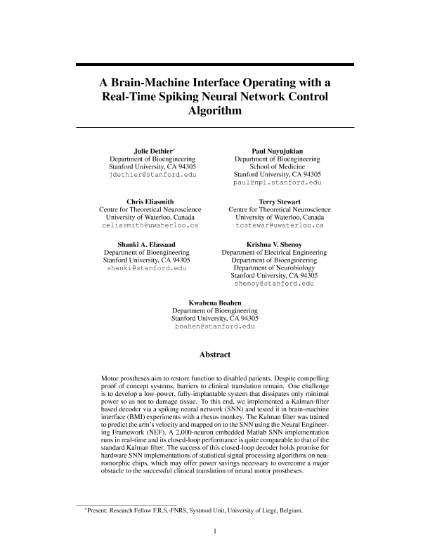 【Julie Dethier&Paul Nuyujukian&Chris Eliasmith&Terry Stewart&Shauki A. Elassaad&Krishna V. Shenoy&Kwabena Boahen】【2023】A Brain-Machine Interface Operating with a Real-Time Spiking Neural Network Control Algorithm-9页
