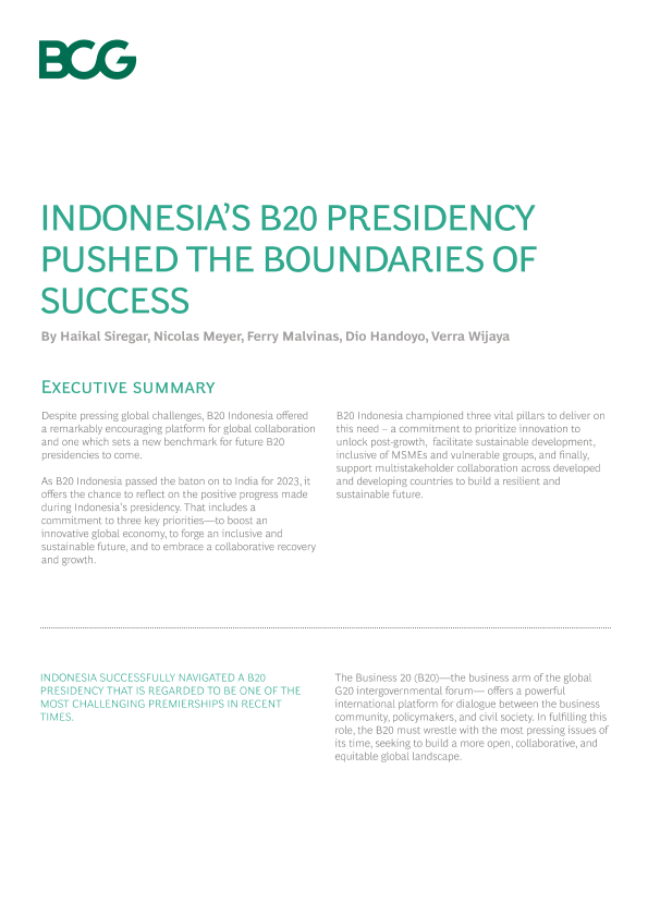 【波士顿咨询】【20230314】Indonesia’s B20 Presidency Pushed the Boundaries of Success-7页