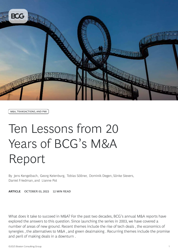 【Boston Consulting Group】【2023】Ten Lessons from 20 Years of BCG’s M&A Report-10页