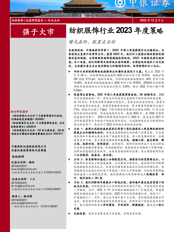 【中银证券】【20221205】纺织服饰行业2023年度策略:曙光在即,配置正当时-27页
