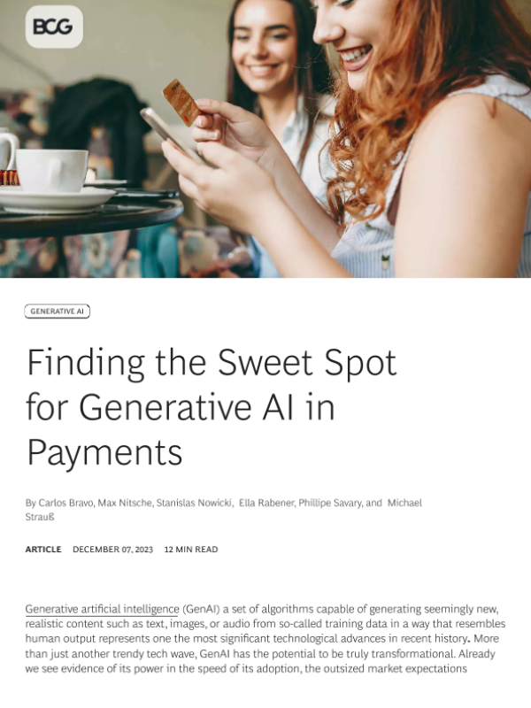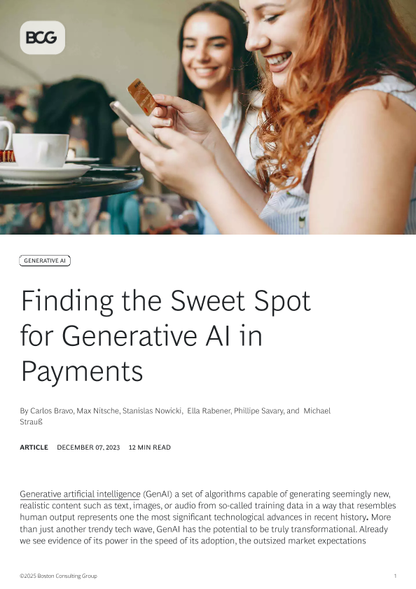【Boston Consulting Group】【20231207】Finding the Sweet Spot for Generative AI in Payments-10页