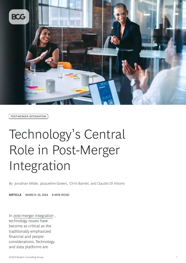 【Boston Consulting Group】【20240319】Technology’s Central Role in Post-Merger Integration-8页