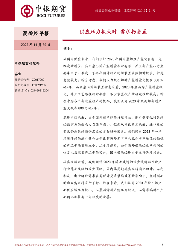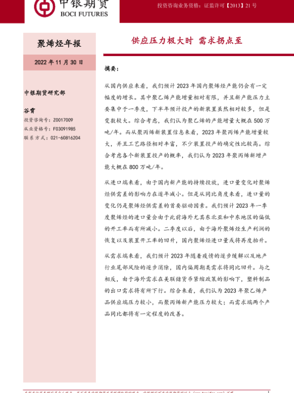 【中银期货】【20221130】聚烯烃年报:供应压力极大时,需求拐点至-23页