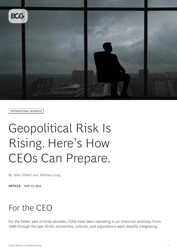 【Boston Consulting Group】【20240521】Geopolitical Risk Is Rising. Here’s How CEOs Can Prepare-9页