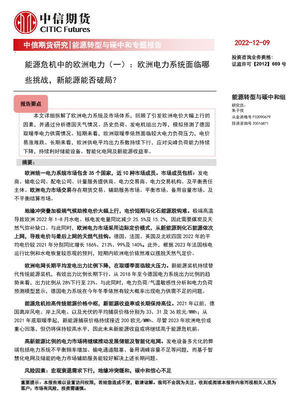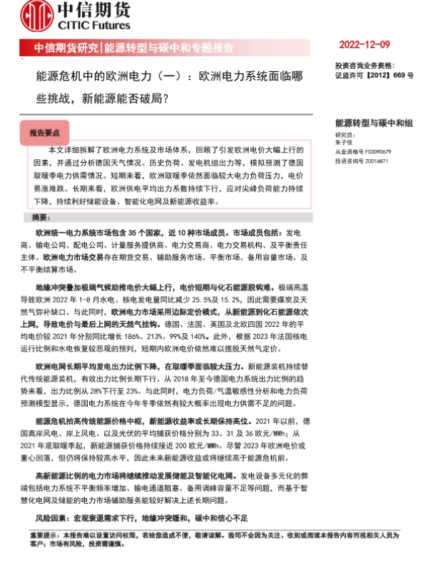 【中信期货】【20221209】能源危机中的欧洲电力(一):欧洲电力系统面临哪些挑战,新能源能否破局?-21页