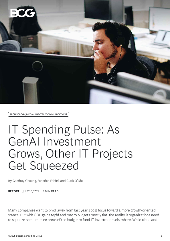 【Boston Consulting Group】【20240716】IT Spending Pulse As GenAI Investment Grows, Other IT Projects Get Squeezed-13页