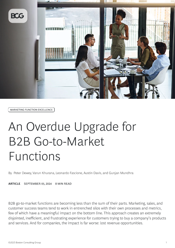 【Boston Consulting Group】【20240905】An Overdue Upgrade for B2B Go-to-Market Functions-7页