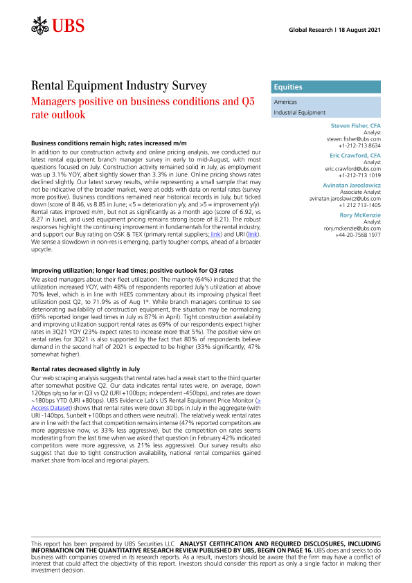 【瑞银】【20210818】瑞银-美股工业设备行业-管理者们对业务状况和第三季度利率前景持乐观态度-25页