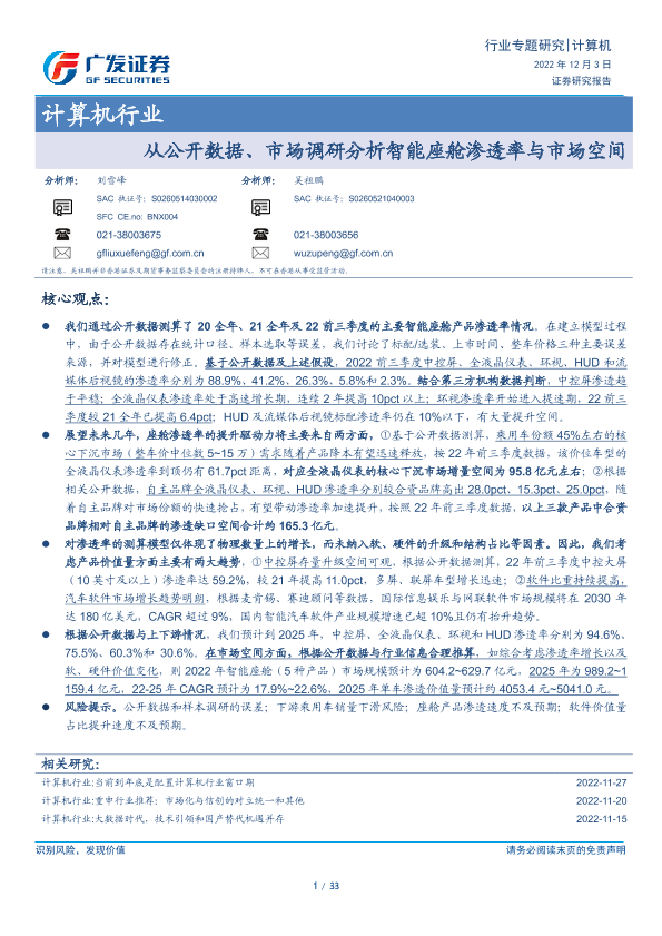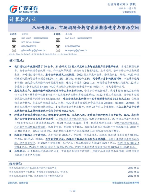 【广发证券】【20221203】从公开数据、市场调研分析智能座舱渗透率与市场空间-33页