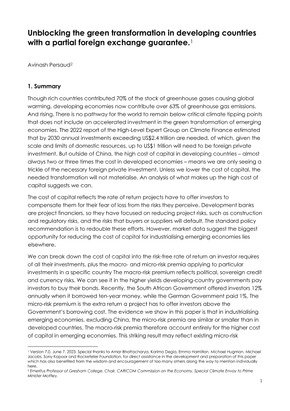 Foreign Exchange Risk Developing Economies Capital Costs Climate finance Green Transformation