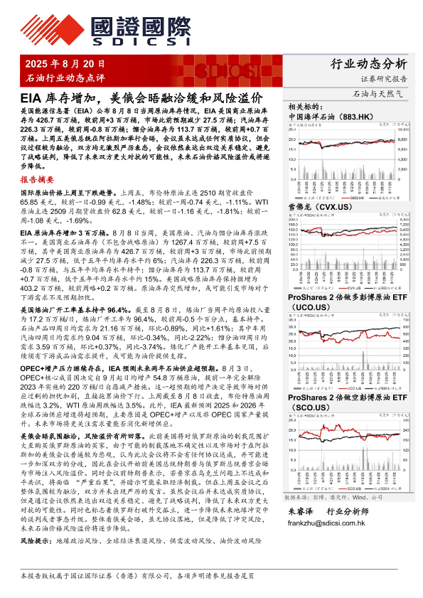 【国证国际】【20250820】石油行业动态点评:EIA库存增加,美俄会晤融洽缓和风险溢价-5页