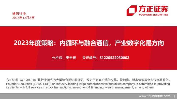 【方正证券】【20221208】通信行业2023年度策略:内循环与融合通信,产业数字化是方向-57页