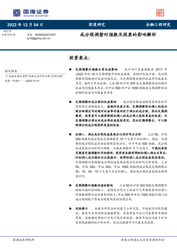 【国海证券】【20221204】金融工程深度研究:成分股调整对指数及股票的影响解析-33页