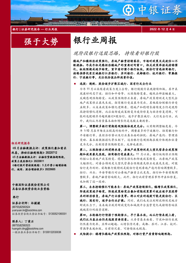 【中银证券】【20221204】银行业周报:现阶段银行选股思路,持续看好银行股-20页