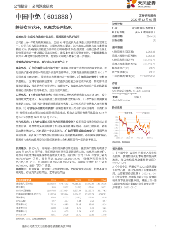 【天风证券】【20221207】静待疫后花开,免税龙头再扬帆-45页