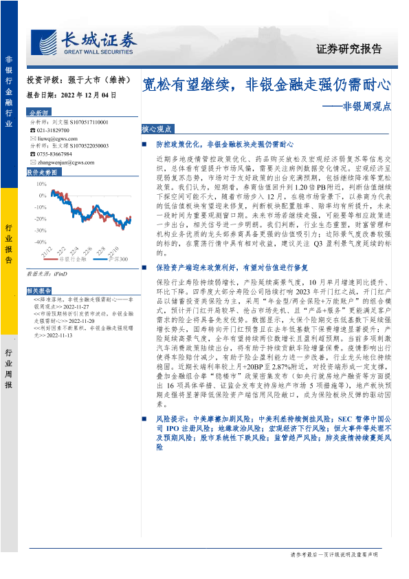 【长城证券】【20221204】非银行业周观点:宽松有望继续,非银金融走强仍需耐心-33页