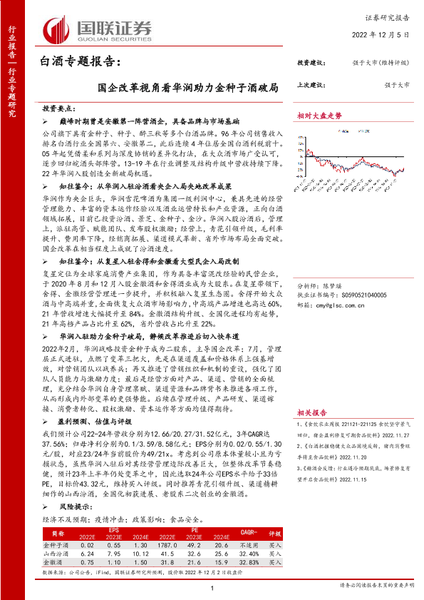 【国联证券】【20221205】食品饮料行业白酒专题报告:国企改革视角看华润助力金种子酒破局-37页