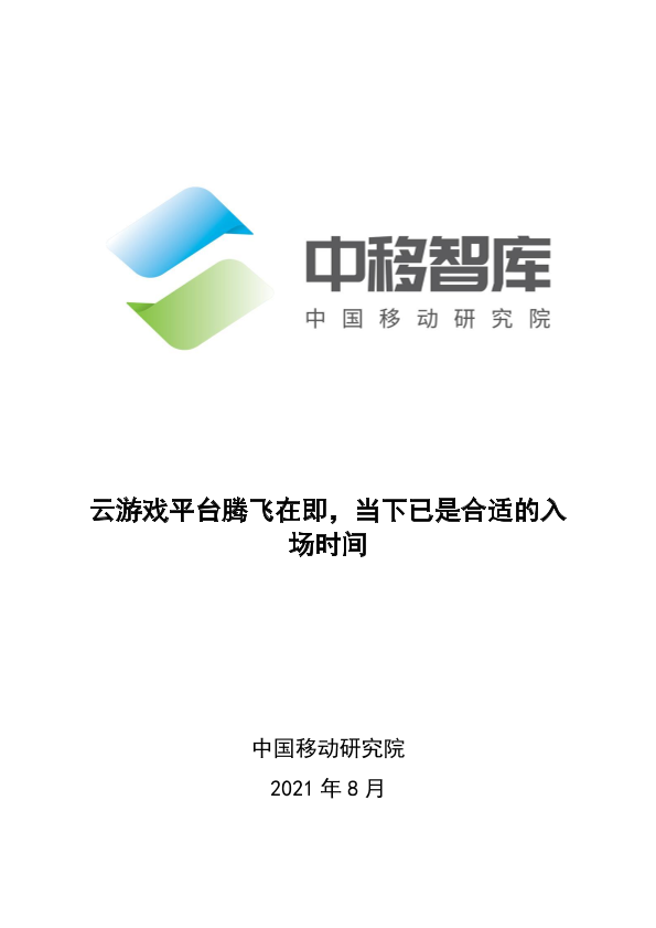 【中国移动研究院】【202108】云游戏平台腾飞在即,当下已是合适的入场时间-15页