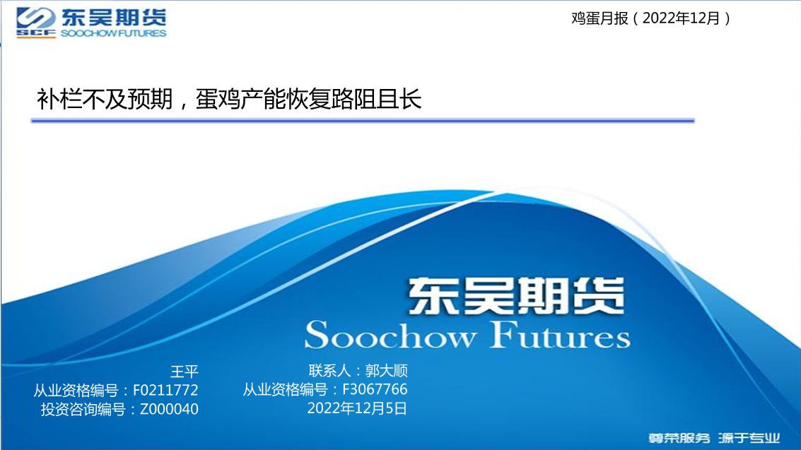 【东吴期货】【20221205】鸡蛋月报(2022年12月):补栏不及预期,蛋鸡产能恢复路阻且长-21页