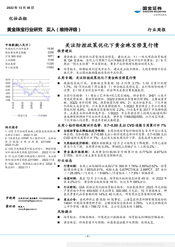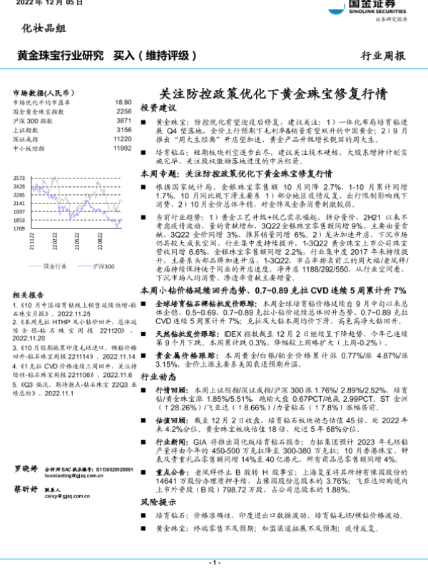 【国金证券】【20221205】黄金珠宝行业周报:关注防控政策优化下黄金珠宝修复行情-23页