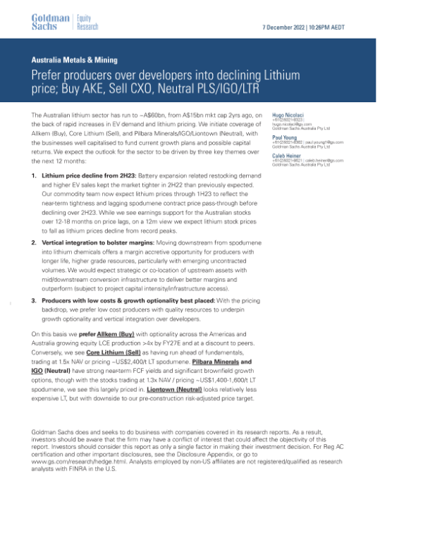 【Goldman Sachs】【20221207】pers into declining Lithium price; Buy AKE, Sell CXO, Neutral PLS_IGO_LTR-27页