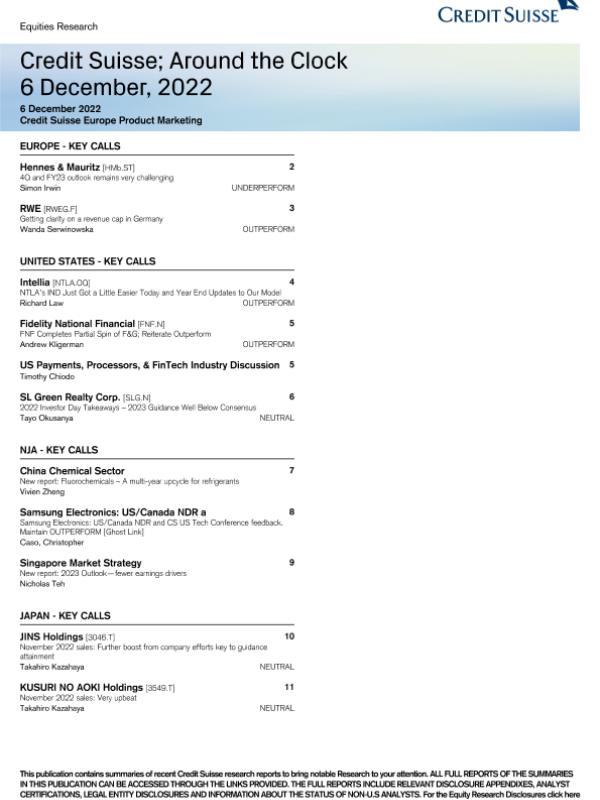 【Credit Suisse】【20221206】Credit Suisse; Around the Clock-11页