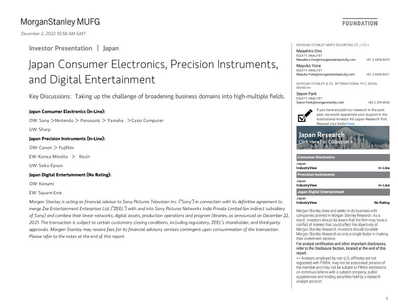 【Morgan Stanley】【20221202】Japan Consumer Electronics, Precision Instruments, and Digital Entertainment Investor Presentation-56页