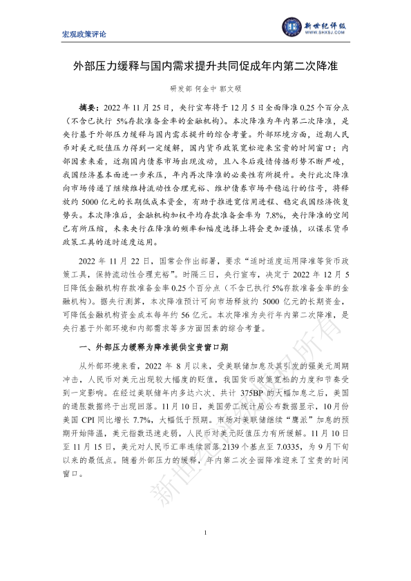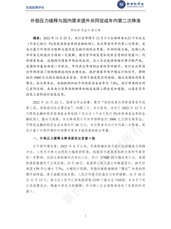 【新世纪评级】【20221125】外部压力缓释与国内需求提升共同促成年内第二次降准-6页