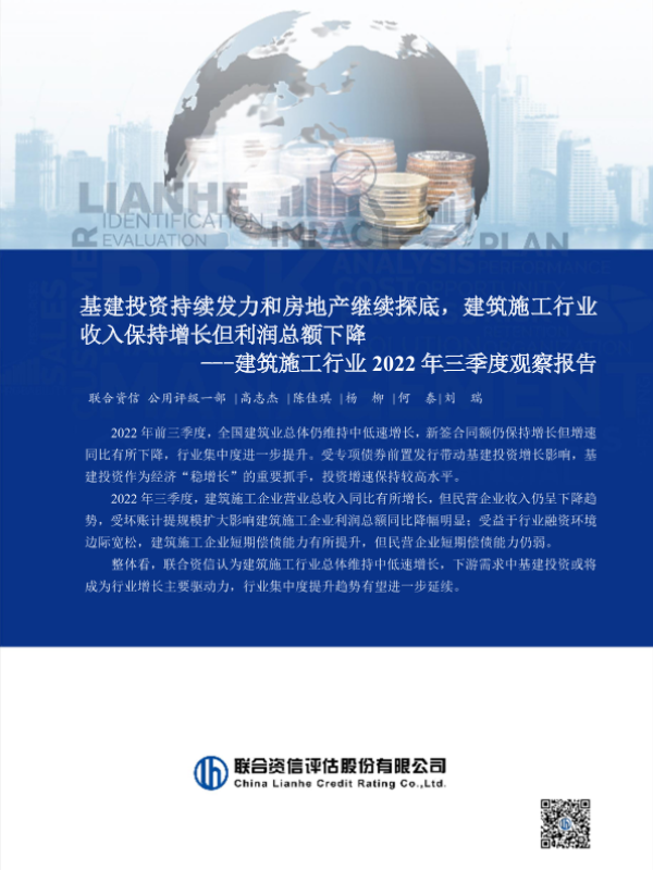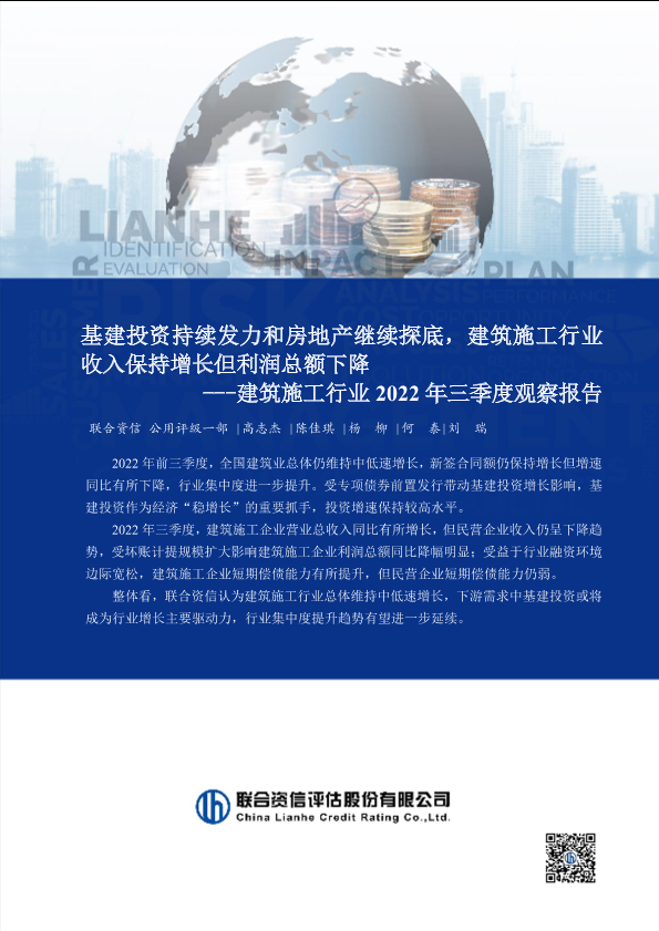 【联合资信】【20220101】基建投资持续发力和房地产继续探底,建筑施工行业收入保持增长但利润总额下降----建筑施工行业2022年三季度观察报告-16页