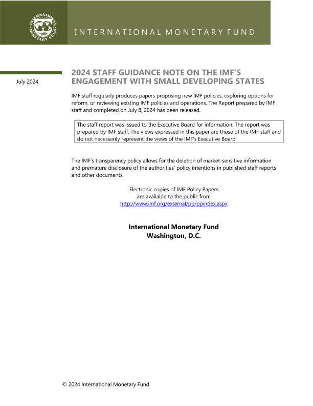 【国际货币基金组织】【20240708】2024 Staff Guidance Note On The IMF’s Engagement With Small Developing States-68页