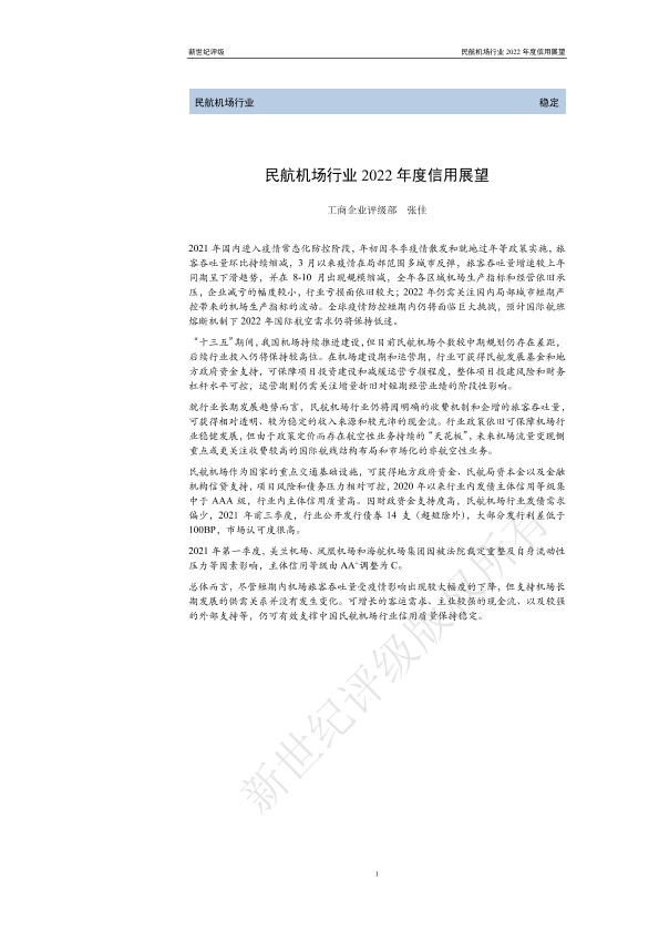 【新世纪评级】【2022】民航机场行业2022年度信用展望-20页
