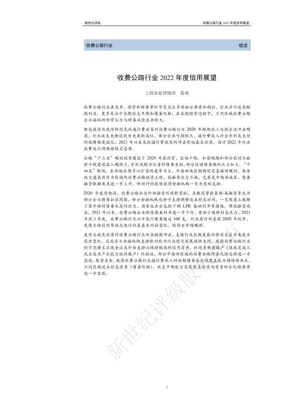 【新世纪评级】【20220101】收费公路行业2022年度信用展望-32页