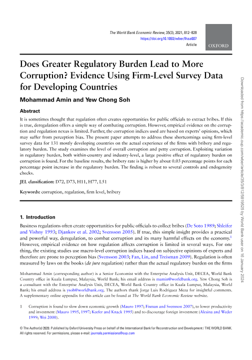 【The World Bank】【2021】Does Greater Regulatory Burden Lead to More Corruption? Evidence Using Firm-Level Survey Data for Developing Countries-17页