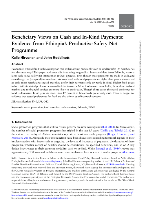 【The World Bank】【2021】Beneficiary Views on Cash and In-Kind Payments Evidence from Ethiopia’s Productive Safety Net Programme-16页
