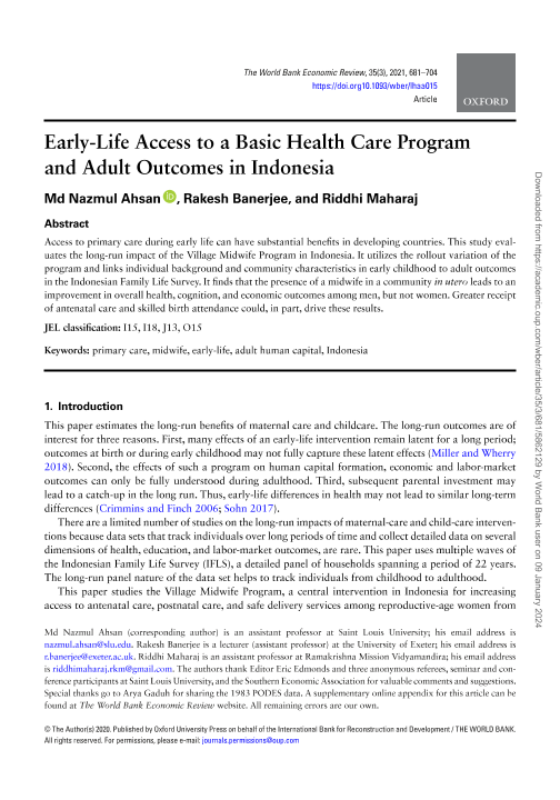 【The World Bank】【2021】Early-Life Access to a Basic Health Care Program and Adult Outcomes in Indonesia-24页