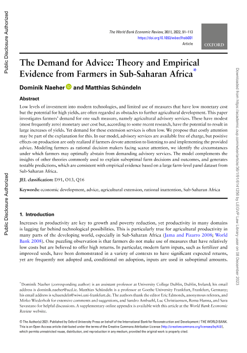 【The World Bank】【2022】The Demand for Advice Theory and Empirical Evidence from Farmers in Sub-Saharan Africa-23页
