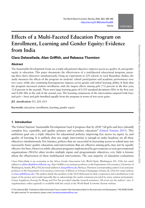 【The World Bank】【2021】Effects of a Multi-Faceted Education Program on Enrollment, Learning and Gender Equity Evidence from India-19页