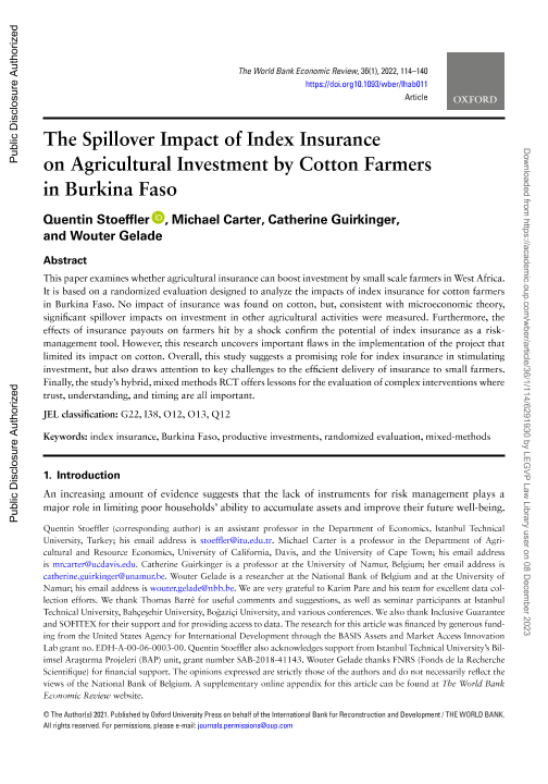 【The World Bank】【2022】The Spillover Impact of Index Insurance on Agricultural Investment by Cotton Farmers in Burkina Faso-27页