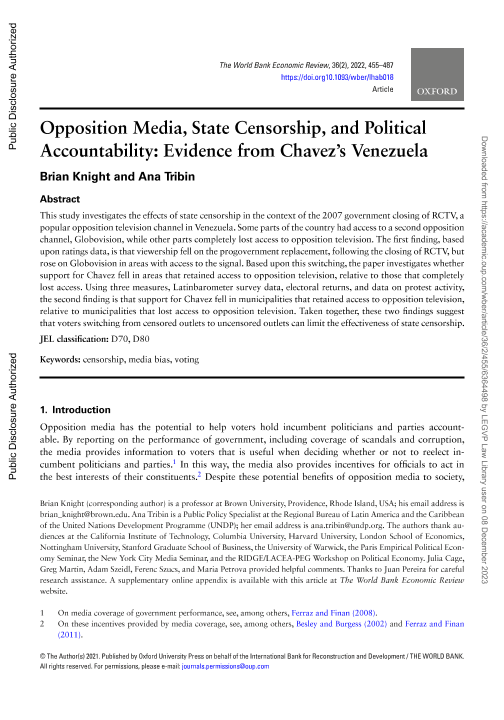 【The World Bank】【2022】Opposition Media, State Censorship, and Political Accountability Evidence from Chavez’s Venezuela-33页