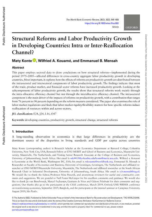 【The World Bank】【2022】Structural Reforms and Labor Productivity Growth in Developing Countries Intra or Inter-Reallocation Channel?-24页